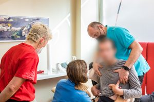 Incluye la participación activa del paciente (tanto dentro como fuera de la consulta), de los familiares o acompañantes y del resto del equipo de profesionales de Recuperación Funcional que trabajan o colaboran con nosotros: Terapeuta Ocupacional, Logopeda, Neuropsicólogo clínico, Psicólogo… todos ellos especializados en daño cerebral y formados en el Concepto Bobath.