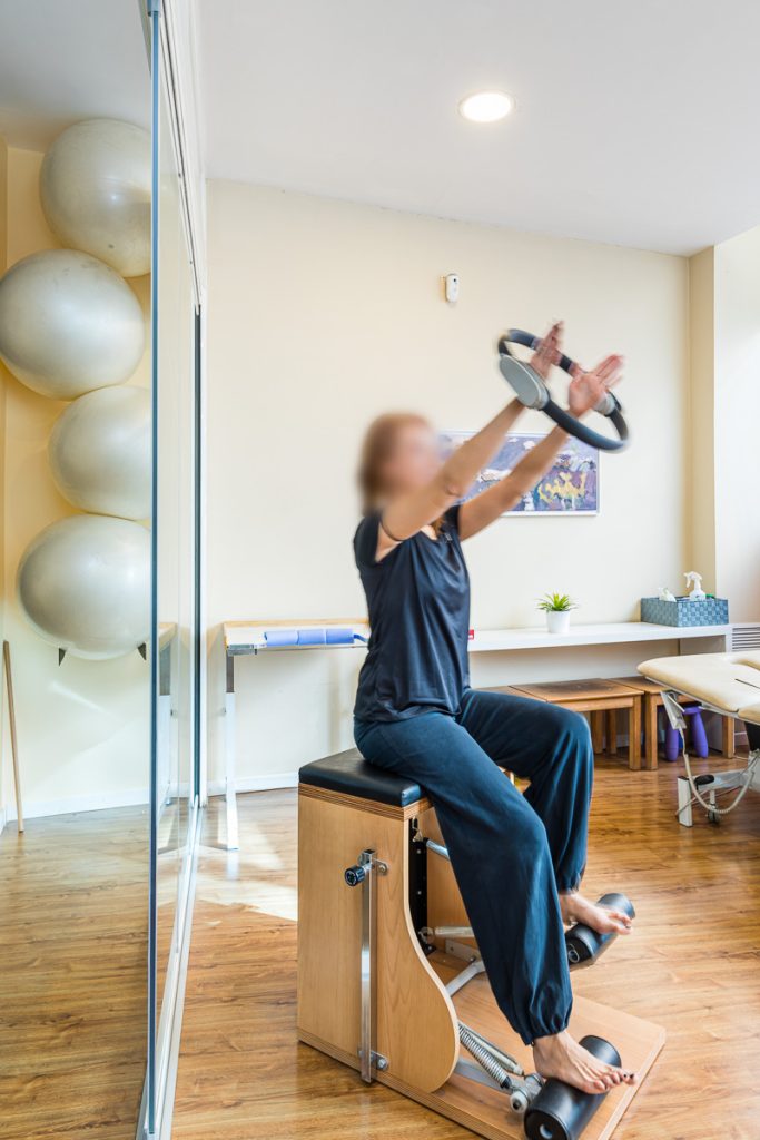 Planes específicos de ejercicio adaptado a cada individuo. Pilates terapéutico (reformer, silla, suelo y accesorios), Neuro-Pilates (reformer, silla, suelo y accesorios), ejercicio postural y acondicionamiento físico.